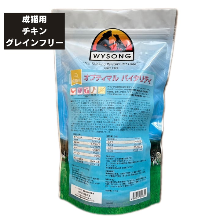 オプティマル バイタリティは高タンパク、低炭水化物、低GIの成猫用総合栄養食です。