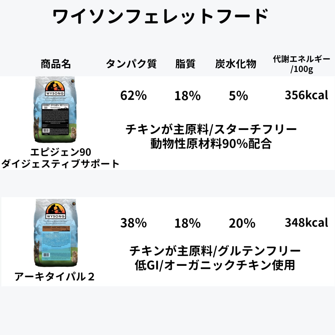 原材料にグルテンを使用していないのでグルテン不耐性、あるいはアレルギーのあるフェレットにも配慮。