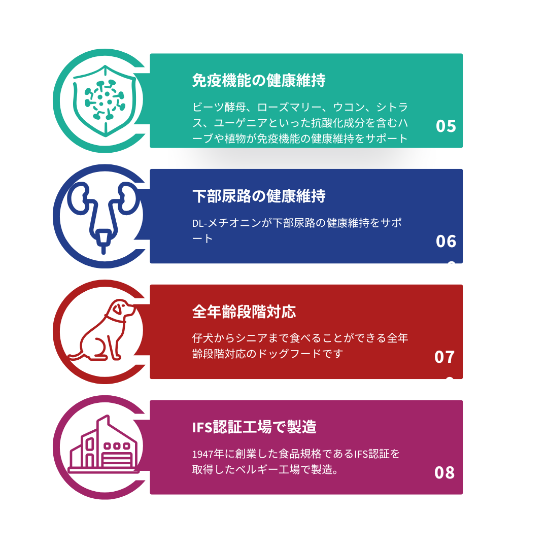 FEDIAF(欧州ペットフード工業会連合)の全年齢対応栄養基準を満たしています。